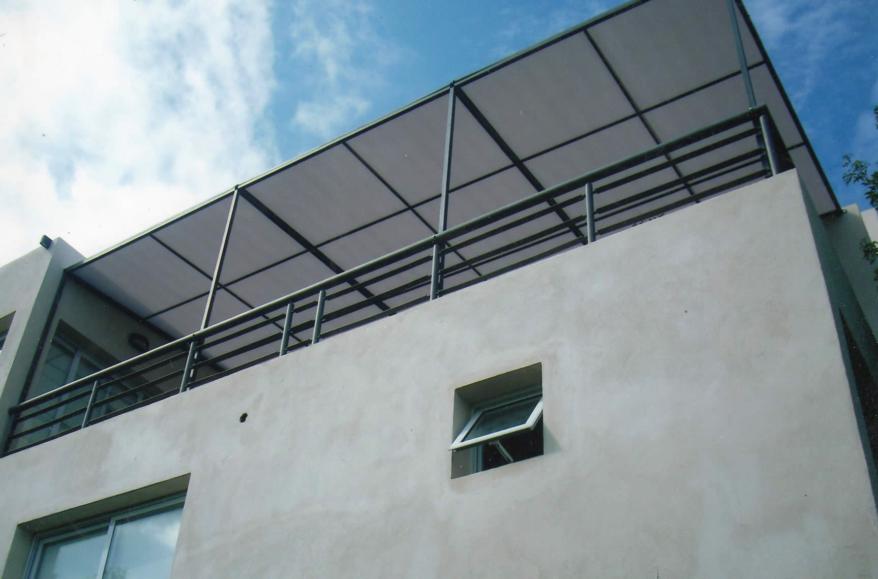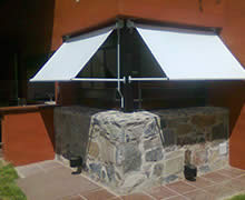 Sistemas enrollables que dispone de brazos laterales con o sin correderas para ganar altura confeccionados en Lona de PVC Pampero de alta resistencia o lonas acrílicas nacionales o importadas y con estructuras pintadas en Epoxi.