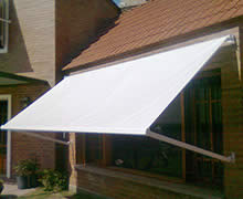 Sistema plegable accionado con soga y roldana, con estructura de aluminio. Confeccionados en lona de PVC Pampero de alta resistencia o lonas acrílicas nacionales o importadas. Modelo ampliamente resistente a los vientos, ideal para ventanas.